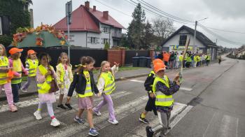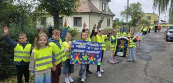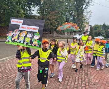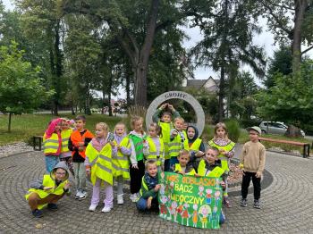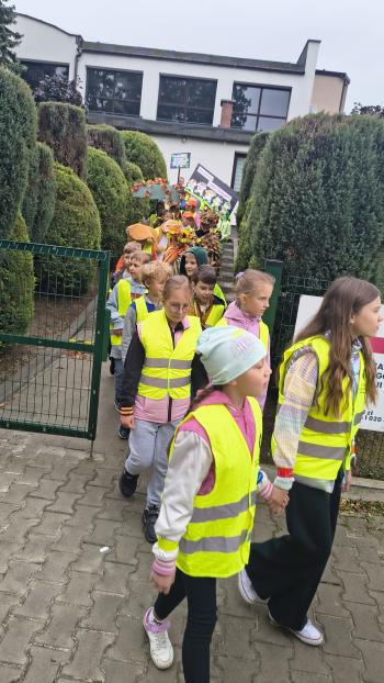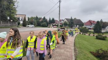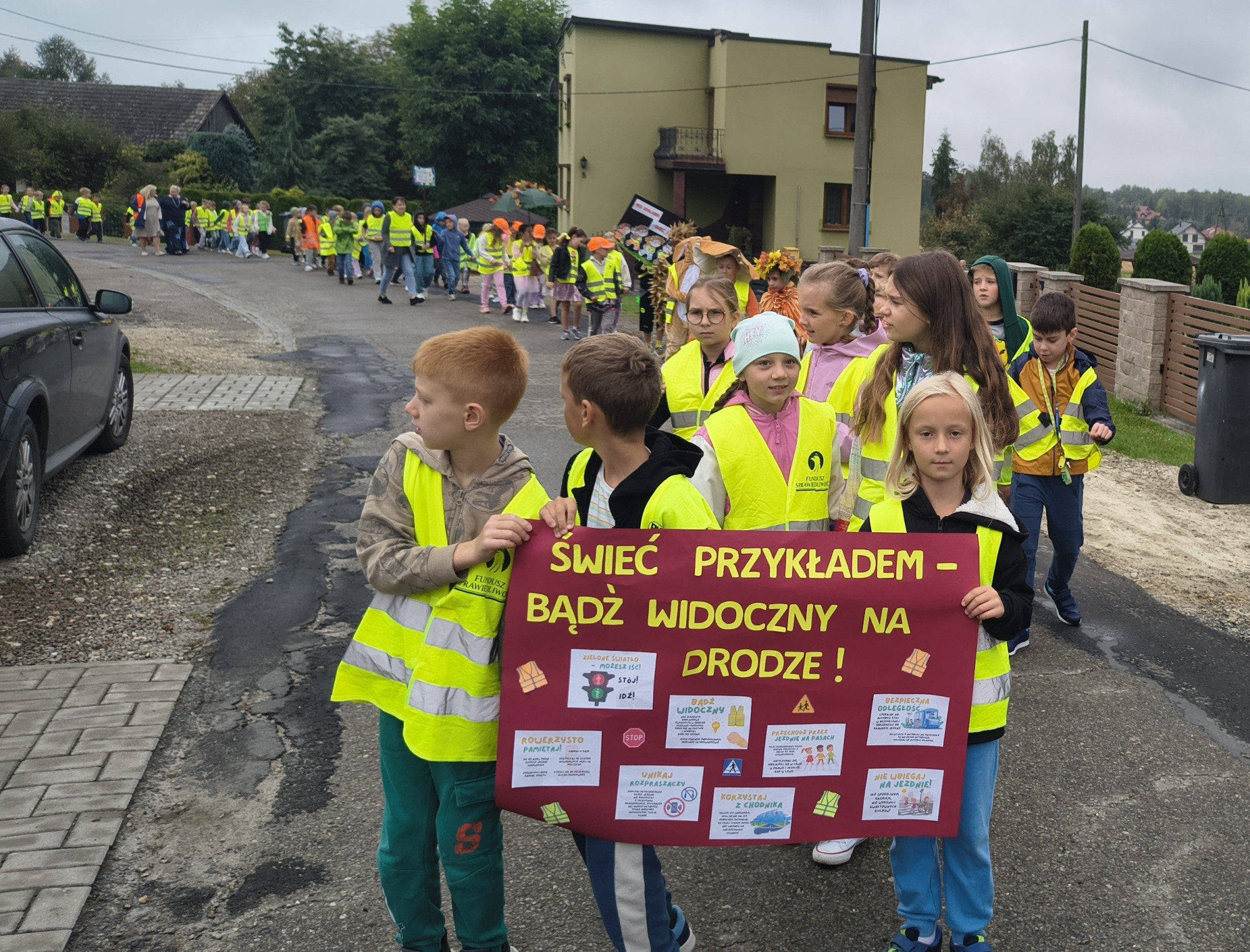 W ramach ogólnopolskiego konkursu „Odblaskowa Szkoła” nasi uczniowie zorganizowali wyjątkowe wydarzenie – połączenie powitania jesieni z przemarszem ulicami Grojca, niosąc ze sobą ważne przesłanie – „Bądź widoczny, bądź bezpieczny!”.