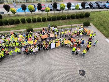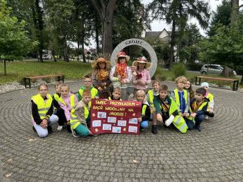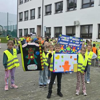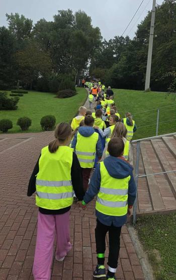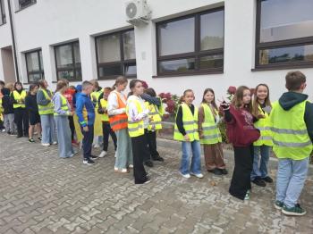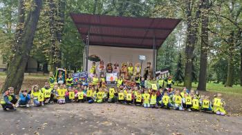 Na zakończenie starsze klasy wykonały pamiątkowe zdjęcie z lotu ptaka, tworząc wspólnie hasło: „Sienkiewicza szkoła wie – odblask przyda się!”