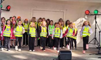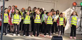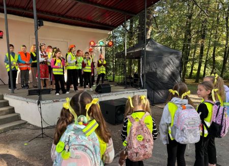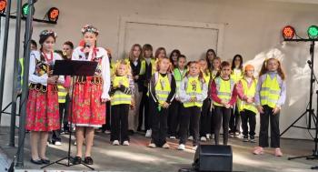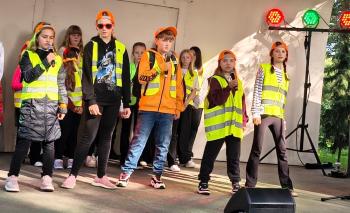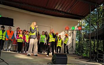W Szkole Podstawowej w Grojcu wiele się dzieje, a jednym z priorytetów jest bezpieczeństwo. Ubrani w kamizelki odblaskowe artyści rozpoczęli swój występ od optymistycznej piosenki „Żyj do przodu”. W kolejnych utworach zachęcali przybyłych na piknik gości do noszenia elementów odblaskowych i przestrzegania zasad bezpieczeństwa w ruchu drogowym. Bezpieczeństwo, to nie tylko odblaski. Zawsze bezpieczniej czujemy się, gdy mamy obok siebie kogoś, na kogo możemy liczyć, kto nas będzie wspierał i nigdy nie zawiedzie O takim wsparciu bliskich osób zaśpiewały siostry Maja i Lena Kędrackie. Zwieńczeniem muzycznego występu była piosenka ludowa „Lipka”.