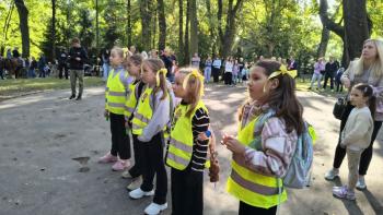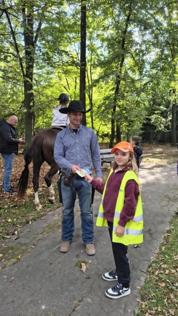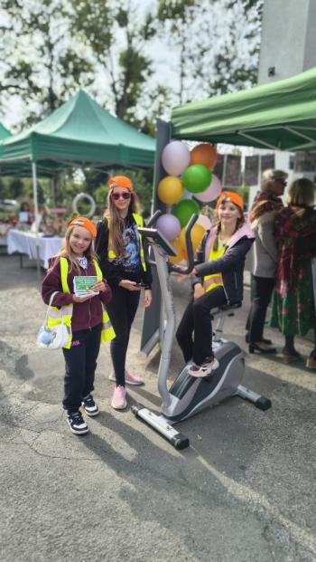 Obecni na pikniku uczniowie korzystali z licznych atrakcji. W ramach realizacji konkursu „Odblaskowa Szkoła” rozdawali ulotki zachęcające do noszenia odblasków.