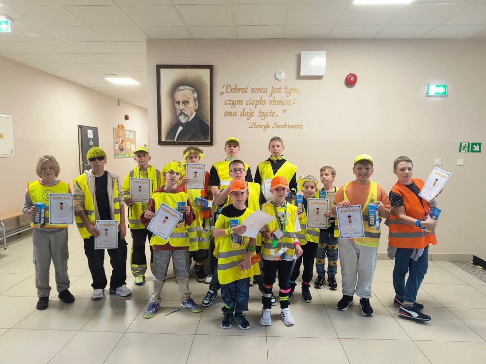 W każdej klasie wybrano najbardziej odblaskowo ubranego ucznia. Laureaci otrzymali pamiątkowe dyplomy, grę oraz słodki upominek. Dziękujemy wszystkim za udział i promowanie noszenia odblasków.