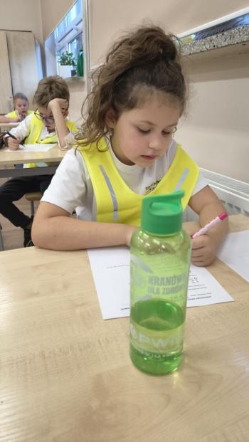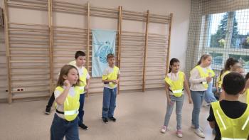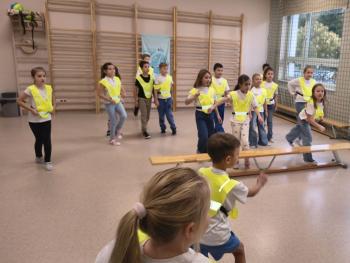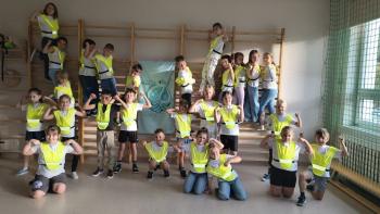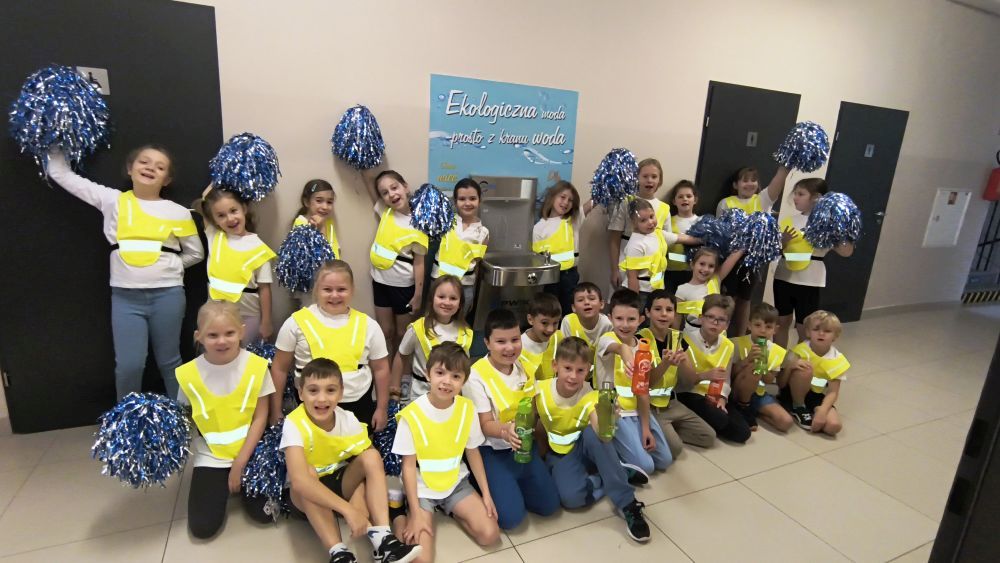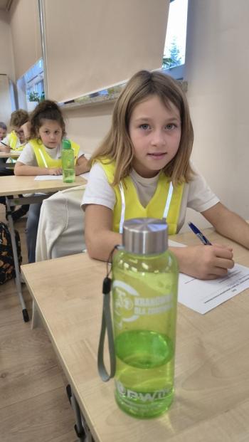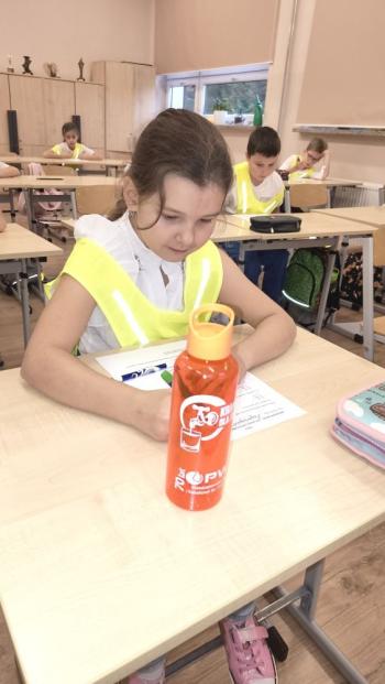 Uczniowie klas drugich dziś także mocno błyszczeli podczas zajęć, ponieważ otrzymali szelki odblaskowe, przekazane przez Przedsiębiorstwo Wodociągów i Kanalizacji w Oświęcimiu. Składamy serdeczne podziękowania Prezesowi Kazimierzowi Homie oraz Pracownikom PWiK za okazaną nam życzliwość i zrozumienie działań na rzecz poprawy bezpieczeństwa naszych uczniów. Po rozgrywkach sportowych drugoklasiści chętnie skorzystali z poidełka wody pitnej zamontowanego na korytarzu szkolnym. „Kranówka dla zdrówka” przydała się także podczas pisania testu wiedzy o bezpieczeństwie w ruchu drogowym.