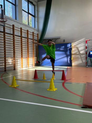 Podczas zajęć wychowania fizycznego uczniowie mieli okazję zaprezentować swoje sportowe talenty, pokazując, że aktywność fizyczna może iść w parze z bezpieczeństwem oraz dobrą zabawą.