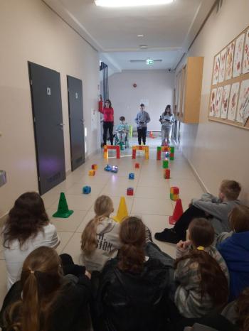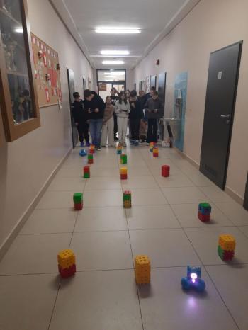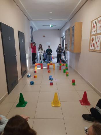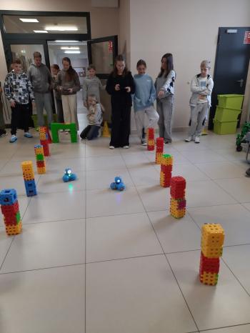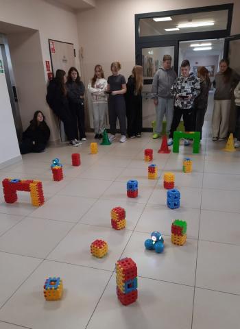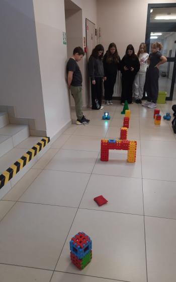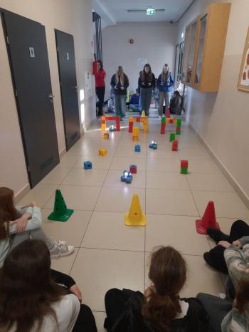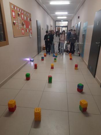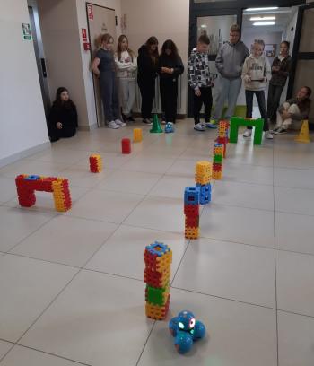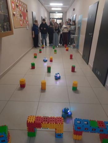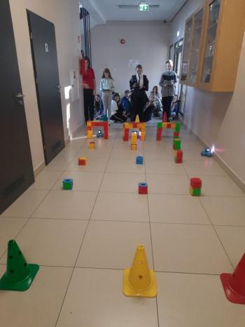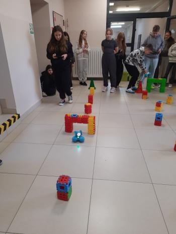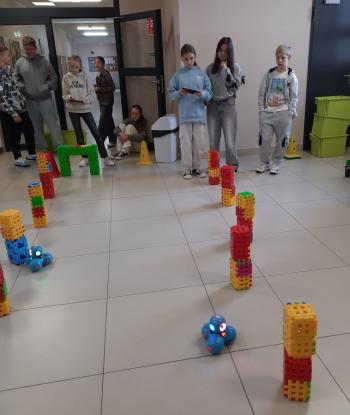 To niewielki, sympatyczny robot, który potrafi reagować na dźwięki, światło i polecenia użytkownika. Za pomocą specjalnej aplikacji uczniowie sterowali nim, wykonując różne zadania i pokonując przygotowany wcześniej tor przeszkód.