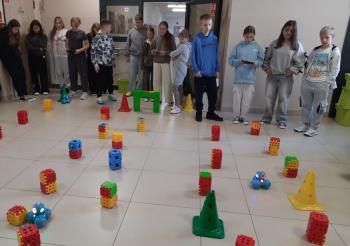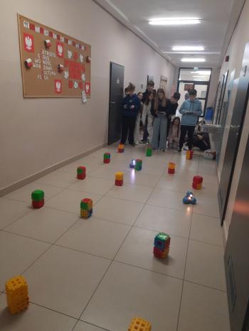 Zanim jednak Dash wyruszył w trasę, uczniowie samodzielnie zaplanowali i zbudowali tor przeszkód z dostępnych w klasie materiałów. Musieli wykazać się kreatywnością, pomysłowością i umiejętnością współpracy, aby robot mógł bezpiecznie dotrzeć do celu.