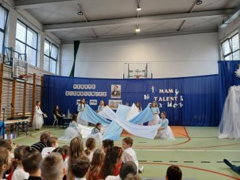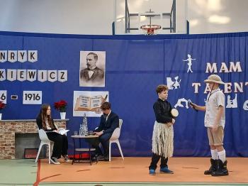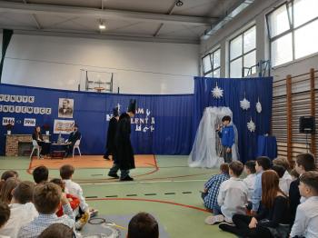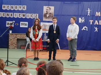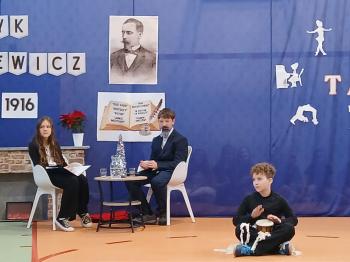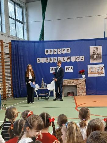W Szkole Podstawowej im. Henryka Sienkiewicza w Grojcu uroczyście obchodzono Dzień Patrona. Głównym punktem wydarzenia było przedstawienie „Spotkanie z Mistrzem Pióra”, przygotowane przez uczniów klas 6a i 6b. W niezwykle pomysłowej formie wywiadu z Henrykiem Sienkiewiczem uczniowie zaprezentowali scenki inspirowane jego najsłynniejszymi dziełami, m.in. „W pustyni i w puszczy”, „Potopem” oraz „Krzyżakami”. Uroczystość wzbogacił Pokaz Talentów, podczas którego dzieci z różnych klas zaprezentowały swoje umiejętności recytatorskie, muzyczne, taneczne, sportowe oraz szachowe. Wydarzenie było nie tylko hołdem dla patrona szkoły, ale także radosnym świętem pasji, kreatywności i talentów naszych uczniów.