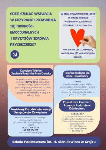 Każdy z nas może doświadczyć trudnych emocji, przeciążenia, lęku, obniżonego nastroju lub kryzysu. W takich momentach warto wiedzieć, gdzie można uzyskać pomoc i wsparcie.